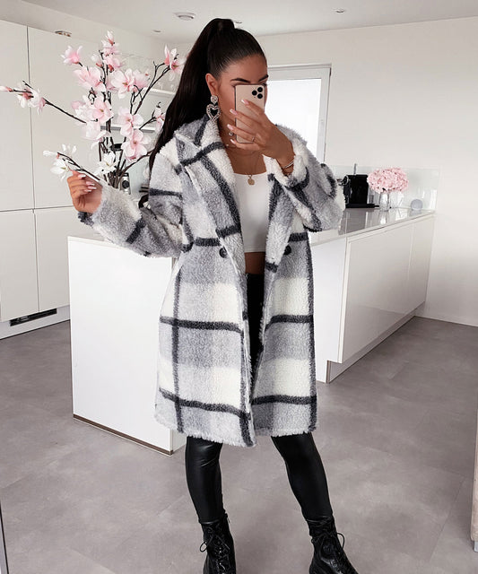EMMELINE - Abrigo de lujo en capas con efecto piel sintética de invierno para mujer