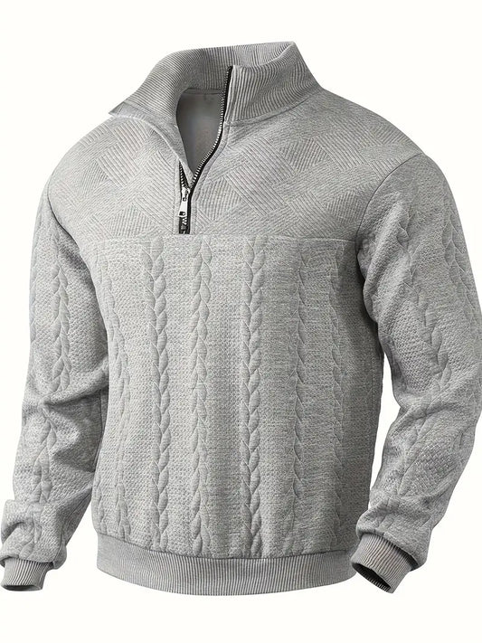 LELAND - Suéter de media cremallera con diseño de punto trenzado para hombre