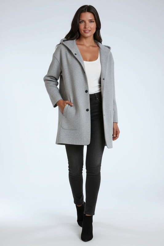 Chaqueta larga de mujer con capucha y cierre de botones a presión – JASMINA