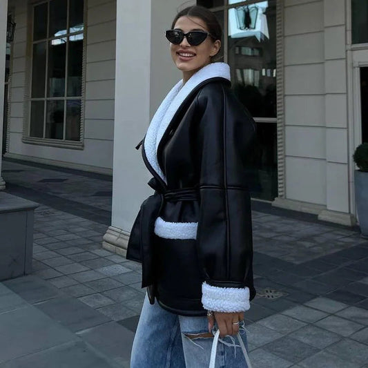 Chaqueta clásica de mujer en piel sintética con diseño elegante – CLAUDIA