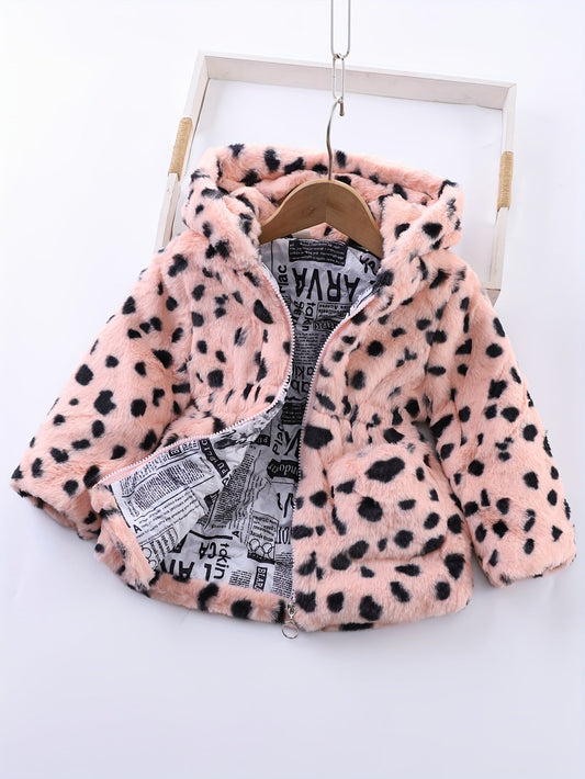 MILA - Chaqueta gruesa de felpa con estampado de leopardo para niñas