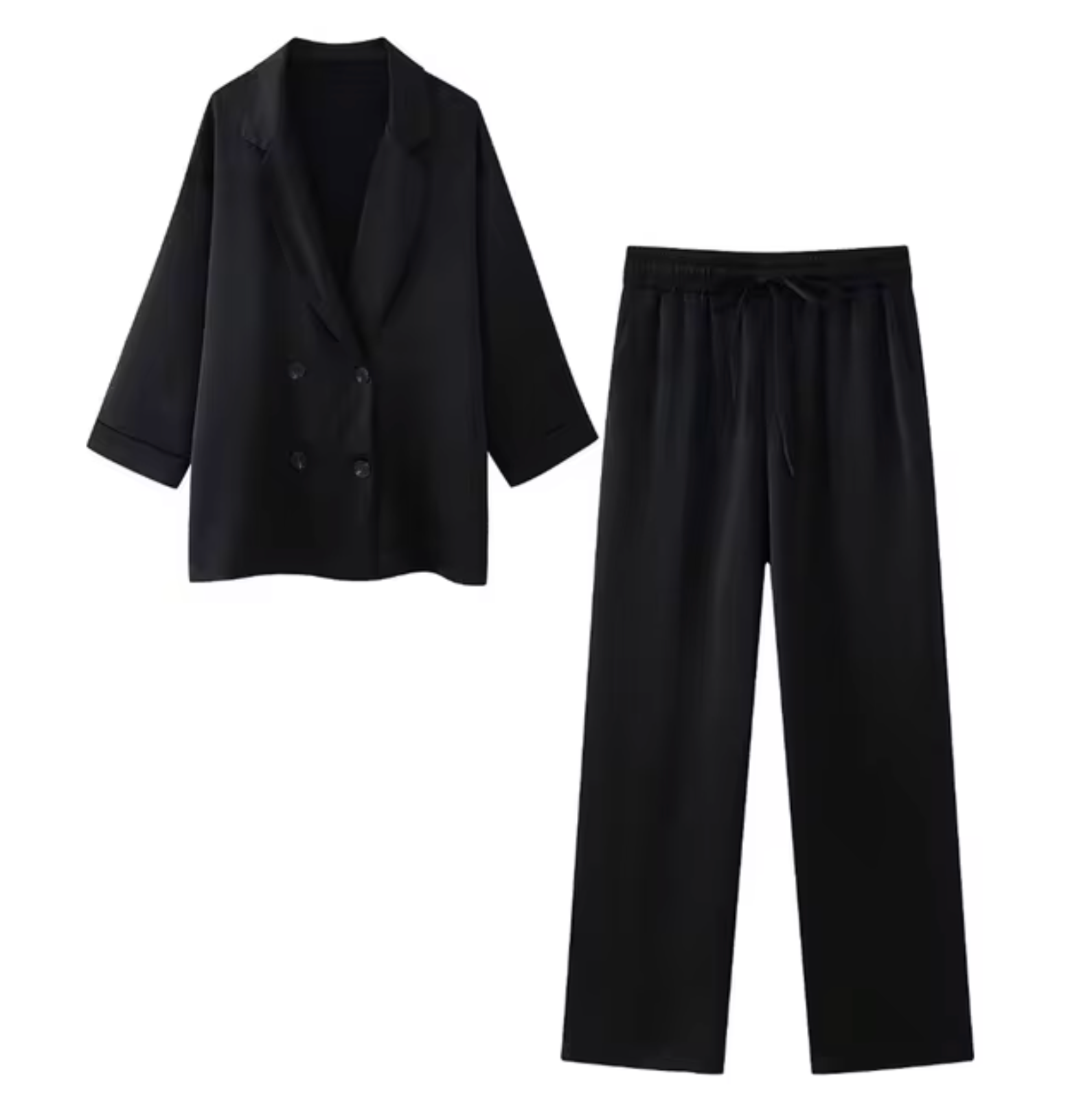 El conjunto ARIELLE combina la elegancia de un abrigo largo con la comodidad de un pantalón a juego, ideal para mujeres que buscan un look refinado y práctico. Este set es perfecto para ocasiones especiales o para un look de oficina estiloso, proporcionando un aire de sofisticación sin esfuerzo. Su diseño atemporal lo convierte en una pieza clave para un guardarropa elegante.