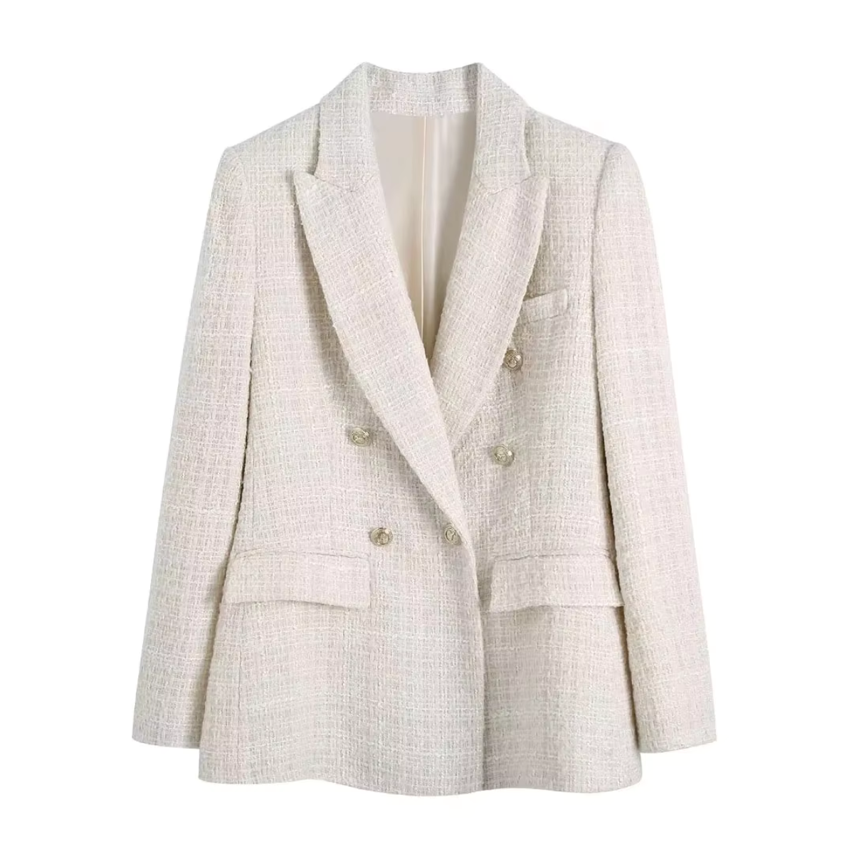 Blazer blanca entallada con doble botonadura – LÉONIE
