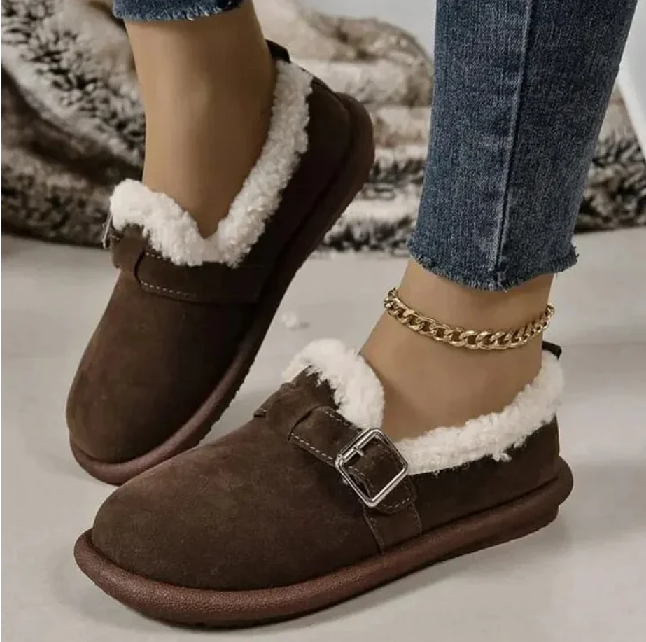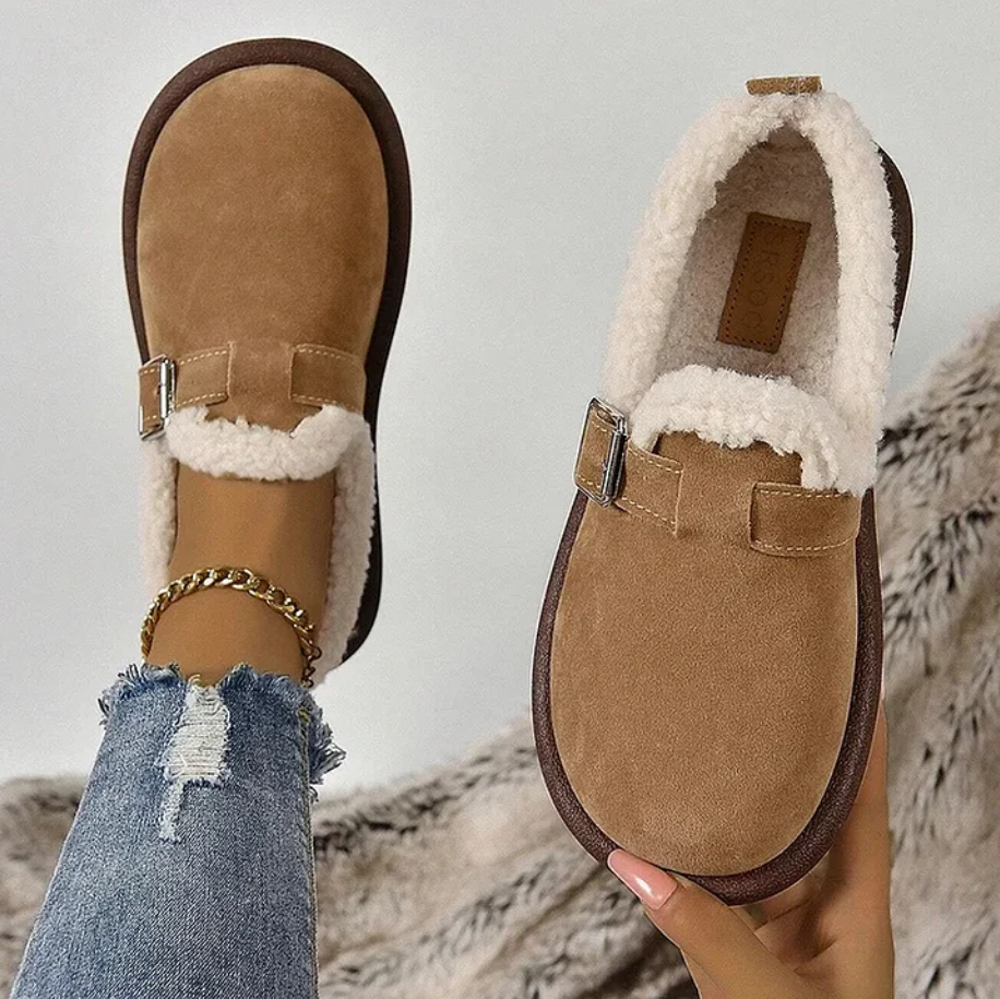 COURTNEY - Mocasines ortopédicos con forro de piel y cierre de hebilla para mujer
