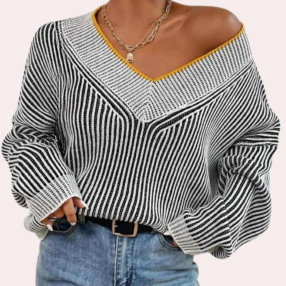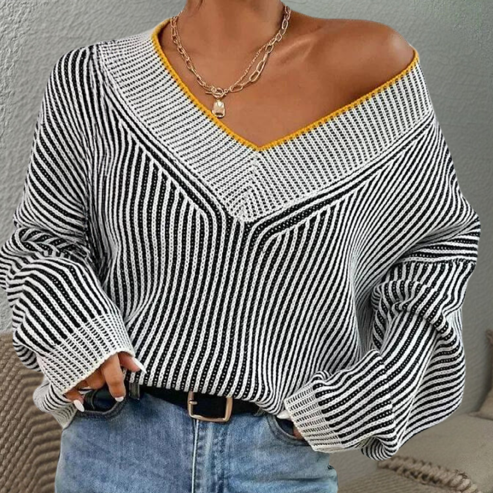 ELENA - Jersey de punto a rayas con hombros descubiertos para mujer