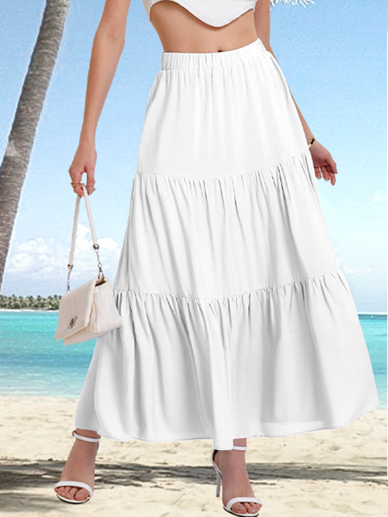 Falda midi de mujer con cintura alta y volantes en capas – BASILISA