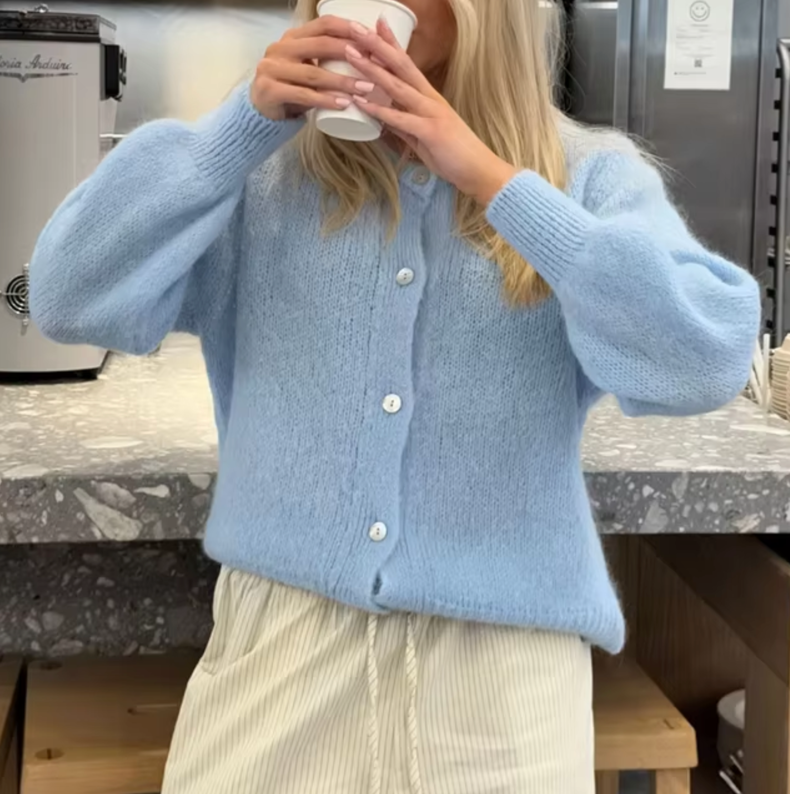 Añade calidez y estilo clásico a tu look con el cárdigan MAIKA.