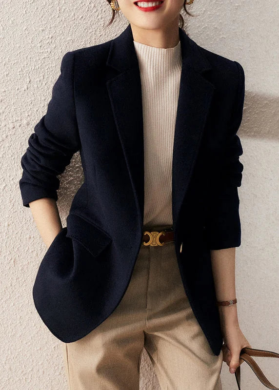 MIRANDA - Abrigo azul marino holgado con solapas y botones para otoño