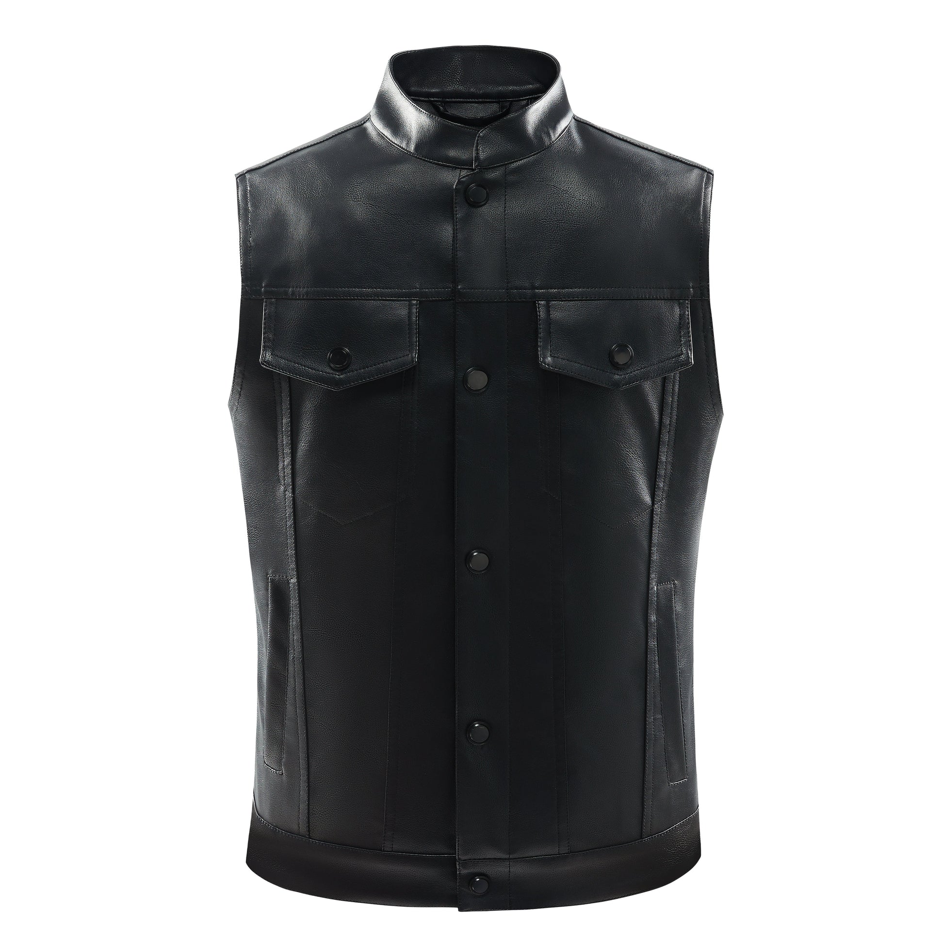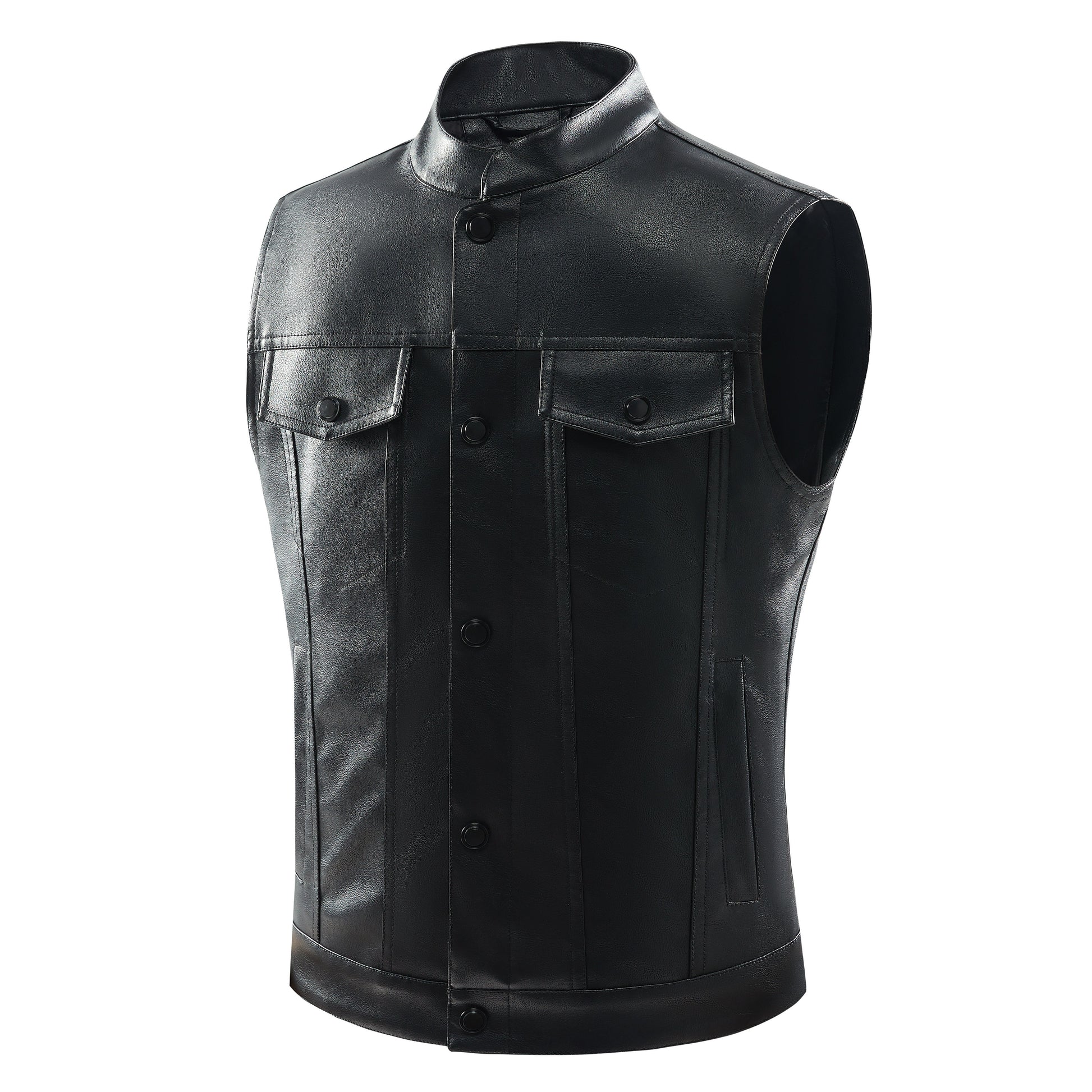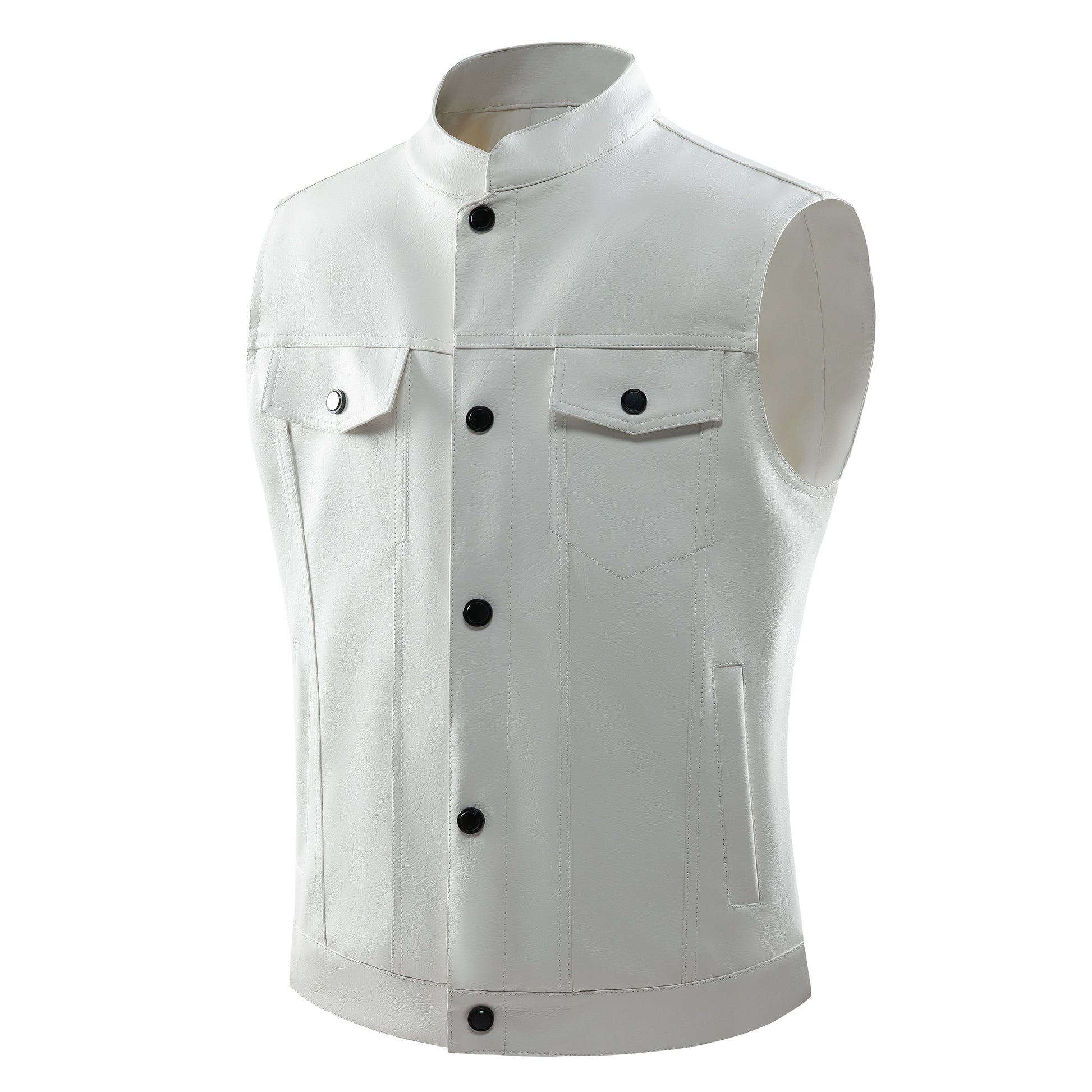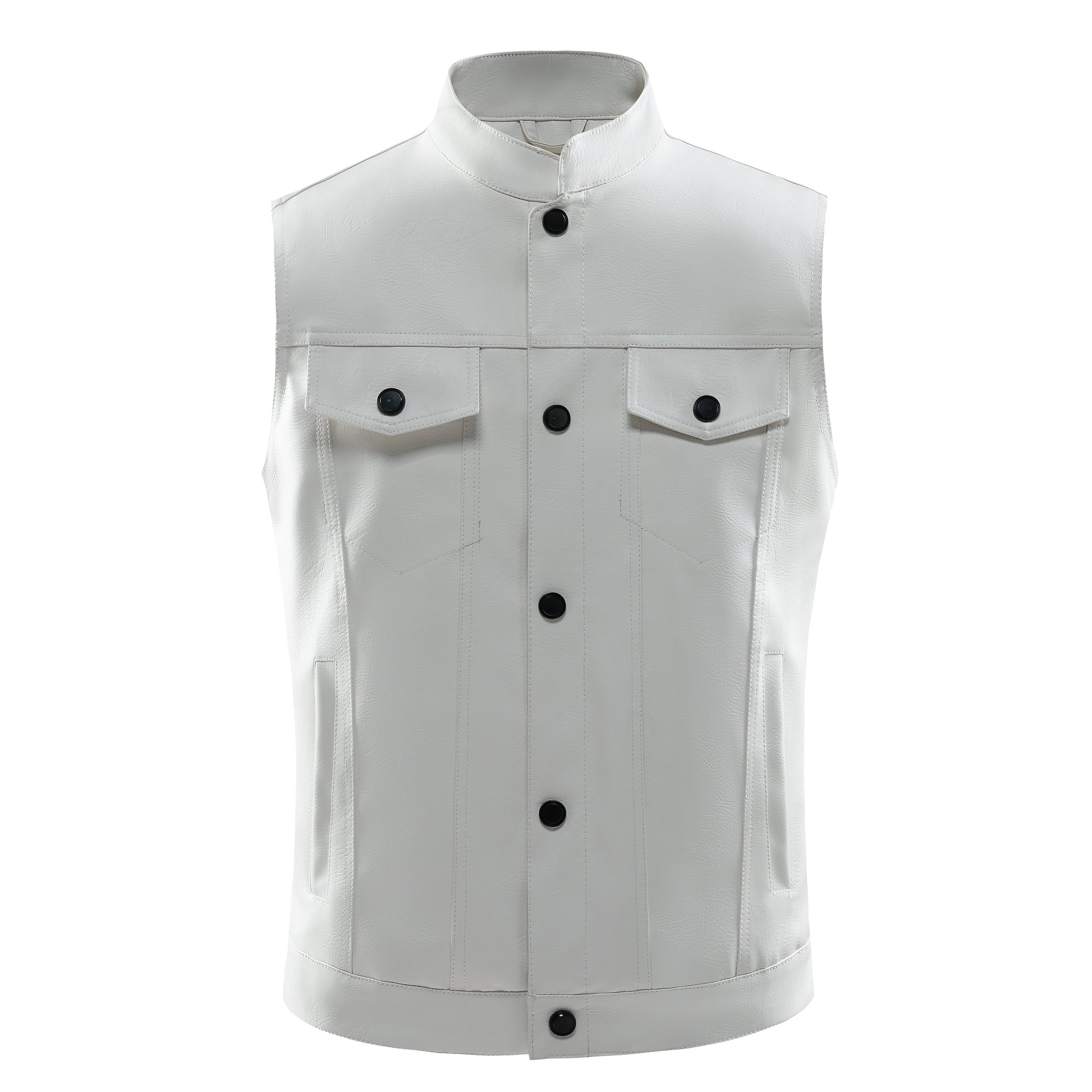 NOLAN - Chaleco retro de cuero con bolsillos frontales