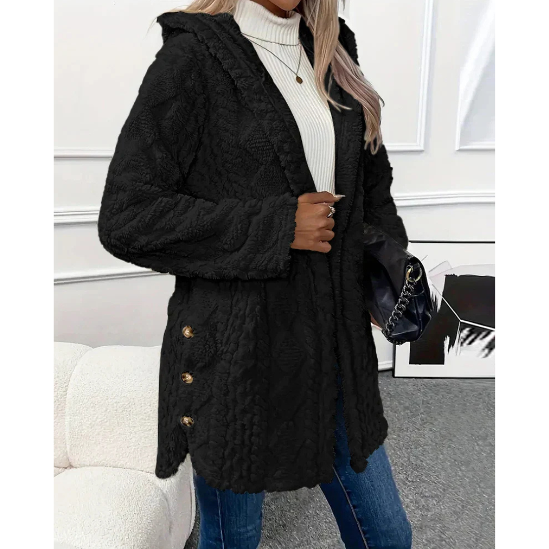 NORA es el cárdigan ideal para mujeres que buscan una prenda cálida y funcional sin sacrificar estilo. Su diseño con capucha y tejido suave lo hace perfecto para relajarte en casa o completar tus looks casuales durante los días más frescos.