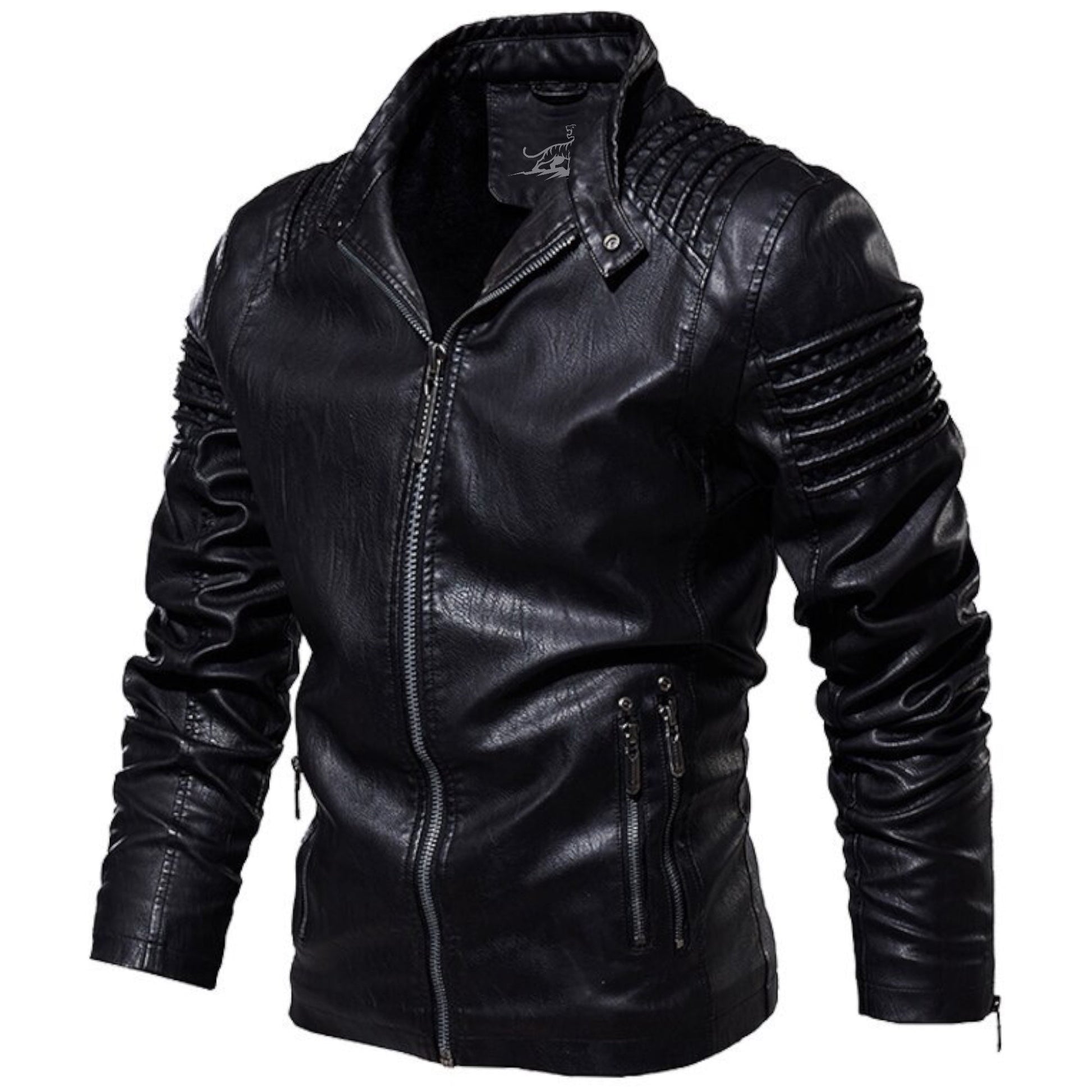 RUFUS - Chaqueta de cuero con cremallera y bolsillos para hombre