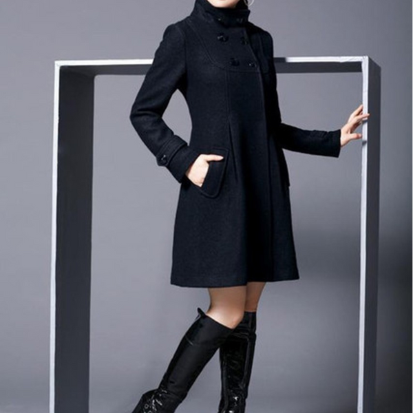 SELENE - Abrigo largo con botones y bolsillos laterales para mujer